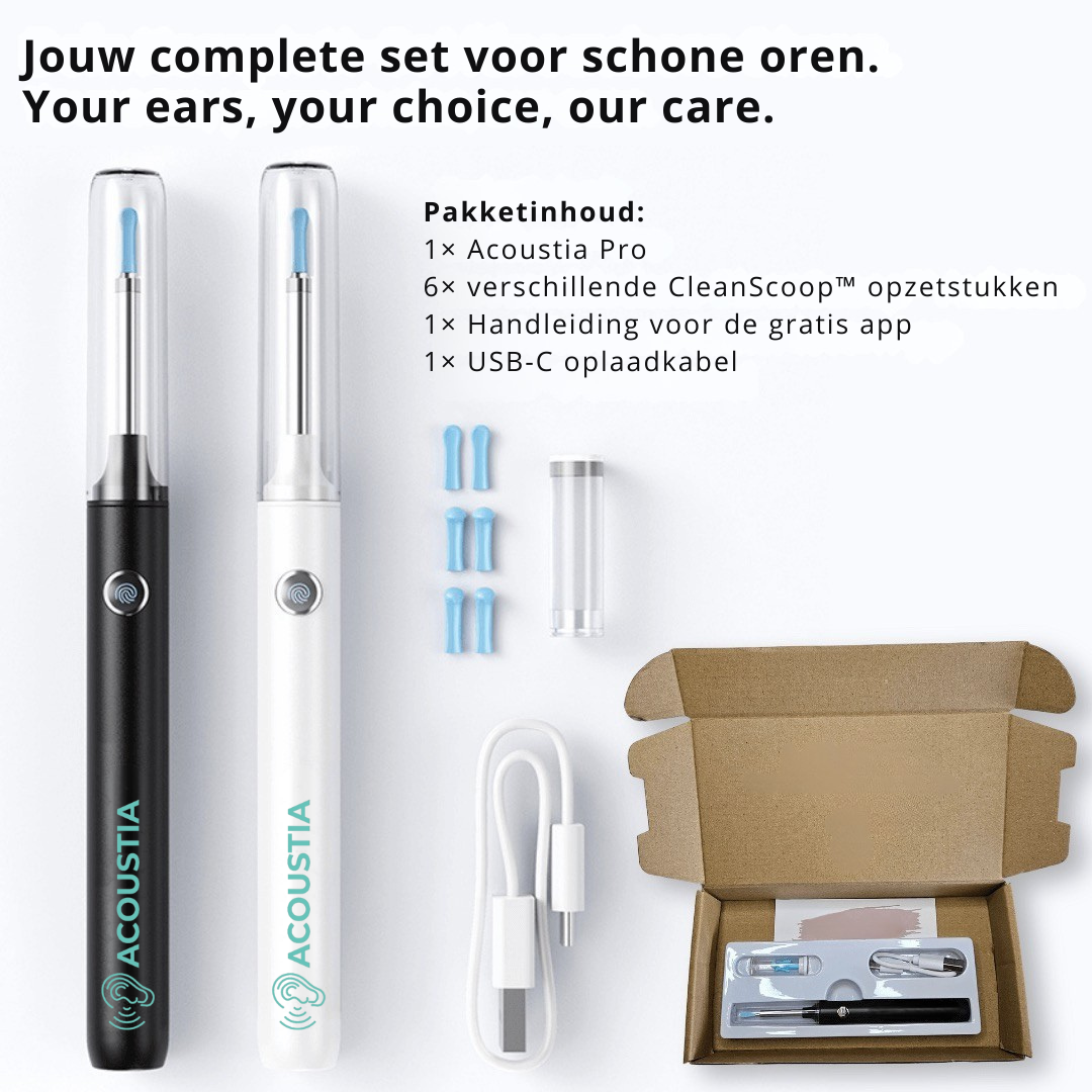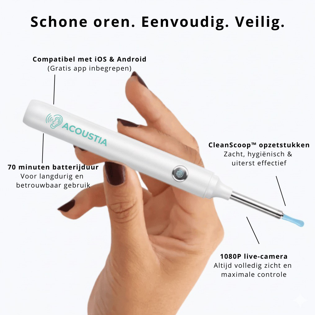 Vanaf nu kun je de Acosutia™ Pro veilig en precies gebruiken om je oren te reinigen.